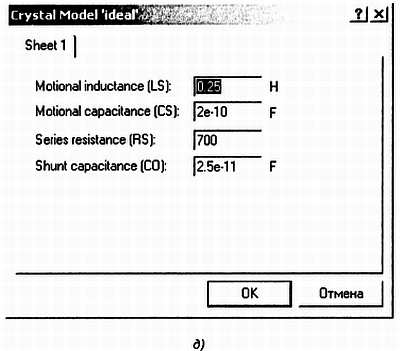 Свойства пьезокварца выбираются в соответствующих последовательно открываемых окнах (рис. 117, г, д).