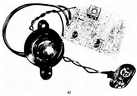 Устройство монтируется на плате А501 размером 27x55 мм в соответствие с приложенным описанием и заключается в корпус BOX-G027. К устройству подключается батарейка с кнопкой и пьезоизлучатель (рис. 118, в).