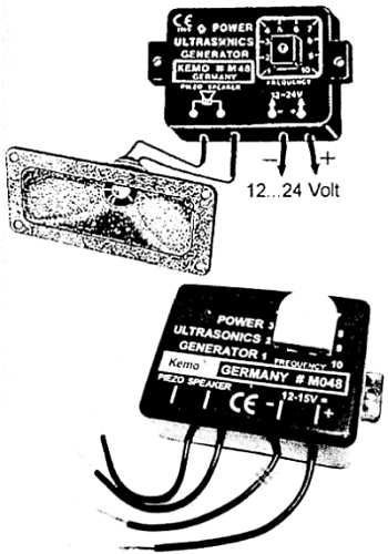Универсальный ультразвуковой генератор требует напряжения питания 12…24 В; диапазон частот воспроизводимых волн: 10…40 кГц.