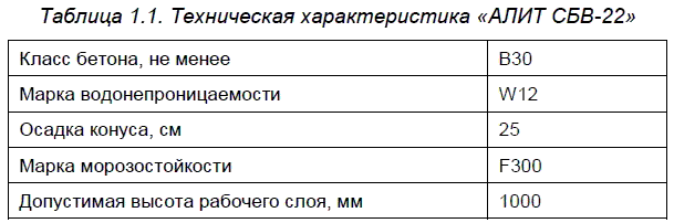Практика применения и многочисленные испытания позволили АНТЦ «Алит» разработать сухую смесь — бетонную цементную гидроизоляционную самоуплотняющуюся «АЛИТ СБВ-22» (табл. 1.1). [5]