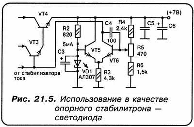 Кстати, есть прямой смысл заменить в приведенной схеме транзисторы VT3 и VT4 на один составной транзистор Дарлингтона (речь идет о рис. 21.1).