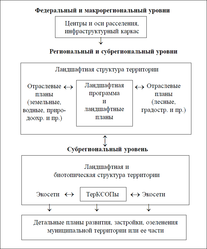 Рис. 1. Ландшафтное планирование в системе общего территориального планирования.