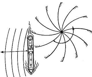 Английский теплоход «Бивербанк», 20 марта 1966 г. Неподалеку от борта внезапно вспыхнуло яркое колесо зеленого огня. Испуганные рыбы метались под корпусом. Полосы света уносились от борта с интервалом 3–4 секунды (рис. 12).