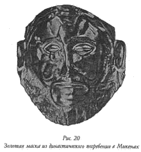 Уже через несколько часов головы усопших превратились в пыль. Но золотые мягко поблескивающие маски сохранили форму лиц; черты этих лиц совершенно индивидуальны, «вне всякого сомнения, каждая из масок должна была являться портретом усопшего». (рис. 20)