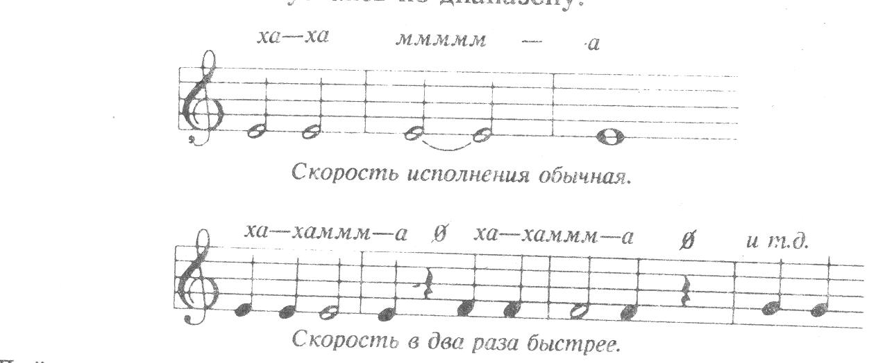 Произнесите эти звукосочетания речевым голосом. Сначала нараспев, поднимаясь и опускаясь по диапазону. Затем в медленном темпе, а потом в самом быстром, на который Вы способны. Используйте эти звукосочетания в импровизациях. Произнесите шепотом: патапатапата тапатапатапа катакатаката такатакатака патакатапатакатапатаката катапатакатапатакатапата.