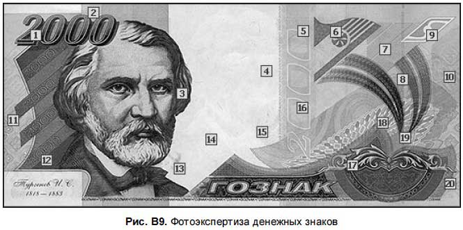 Аналогично фотография помогает в криминалистике для выявления поддельных денег, установления истины в следственных экспериментах. Фотография в инфракрасных лучах или ультрафиолете помогает выявить приписки, искажения, внесенные в документы, прочитать надписи, залитые чернилами, установить подлинность подписи на финансовых документах (рис. В9).