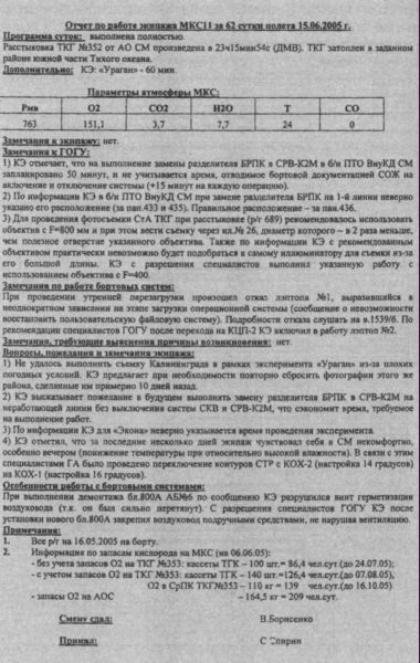 Отчет ЦУПа по работе экипажа Международной космической станции за сутки
