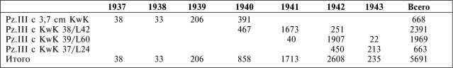 Что касается общего количества выпущенных машин, то Pz.III не является исключением из числа других немецких танков — «в источниках согласия нет», а значит, и нет возможности указать абсолютно точные данные. Предлагаемая читателям таблица является результатом анализа нескольких зарубежных и отечественных источников. Цифры, приводимые в ней, представляются автору наиболее достоверными.