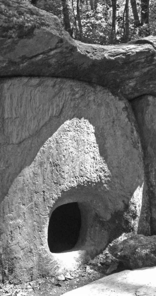 Адыгейцы считают, что дольмены, которые расположены в горах вдоль побережья Черного моря, построили карлики. Их легенды рассказывают о войне хитрых карликов с могучими, но глуповатыми великанами. Карлики победили и заставили великанов построить для себя дома из многотонных плит и камней. Действительно, входы в эти загадочные мегалитические сооружения, сделанные в виде небольшого круглого отверстия, слишком малы для обычного человека.