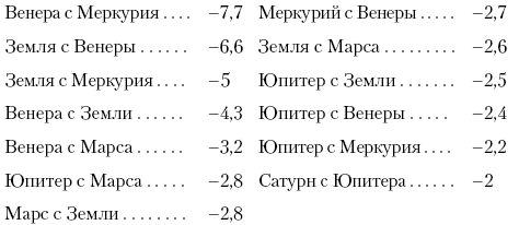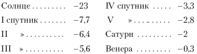 Поучительна, наконец, следующая оценка блеска планет, наблюдаемых одна с другой. Располагаем их в порядке убывания блеска.