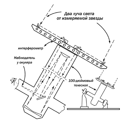 При измерении диаметров звезд мы следуем тем же путем, но ввиду чрезвычайной малости углового диаметра звезд должны применять весьма большие телескопы.