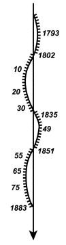 Рис. 74. Путь Сириуса среди звезд с 1793 по 1883 г.