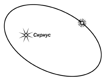 Рис. 75. Орбита спутника Сириуса по отношению к Сириусу (Сириус не находится в фокусе видимого эллипса, потому что истинный эллипс искажен проекцией – мы видим его под углом)