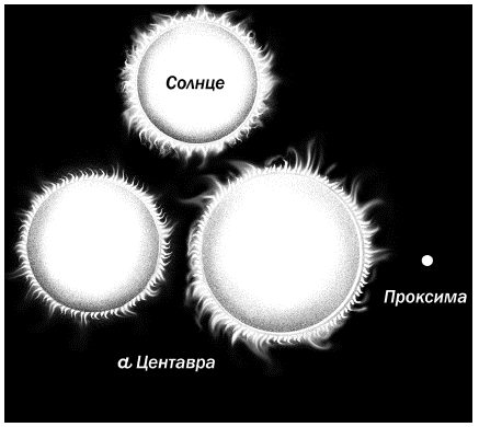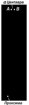 Рис. 81. Система ближайшей к Солнцу звезды ? Центавра: А, В и Проксима Центавра