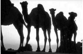 Но мало того, что с помощью всех этих приспособлений верблюд может до двух недель обходиться без воды, что незаменимо в пустыне, он также идеально приспособлен к ее климату. Короткая толстая шерсть верблюда отражает много солнечного света, защищая его не только от прямых лучей солнца, но также от того света, который в больших количествах рассеивается зернами песка. Длинные ресницы и волосы в ушах защищают от попадания песчинок в глаза и уши. Почки и мочевой пузырь чрезвычайно эффективно сохраняют воду: моча верблюда густа, как сироп, а кал настолько сухой, что его можно сразу бросать в костер для растопки. Даже бег верблюда когда двигается иноходью, выбрасывая обе ноги с одной стороны, а потом обе с другой, — и тот, как оказывается, наиболее эффективен именно на песчаной почве, позволяя ему не утопать в песке. Не случайно верблюды и стали сейчас скаковыми животными Востока.