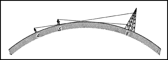 Посмотрите на рис. 2. Если человек стоит на поверхности Земли в месте А и смотрит на высокую постройку, находящуюся в месте В, то из-за выпуклости Земли он видит только самую верхнюю часть постройки. Но если он пойдёт по направлению к постройке и приблизится к месту Б, он увидит постройку почти до самого её основания. Ничего подобного не случилось бы на плоской Земле: на любом расстоянии мы увидели бы всю постройку от вершины до основания. Земля кажется нам плоской только потому, что она очень велика, а отчасти и потому, что мы редко плаваем по морю и ещё реже ходим по совершенно ровной местности, где нам не мешали бы холмы, деревья и ближние здания, которые обычно закрывают от нас горизонт.