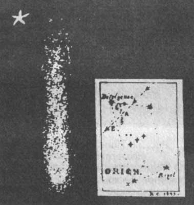 Рис. 51. Загадочный кометообразный объект, пересекший созвездие Орион за 15 минут 7 марта 1893 г.