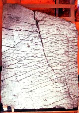 Особенность изображения на плите состоит в том, что оно рельефно. Сегодня такая карта может быть изготовлена лишь путем космических съемок с высоты 1000 км.