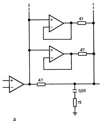 Рис. 4.94. д — благодаря дополнительным ОУ выходной ток увеличен; следите, чтобы не было перегрева;