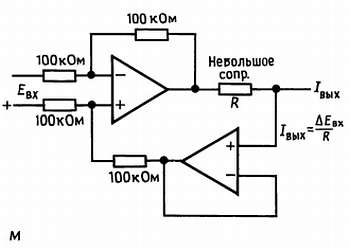 Рис. 4.94. я — источник тока Хауленда для управляющих схем преобразования напряжений в ток (от 1 мкА до 1 мА);