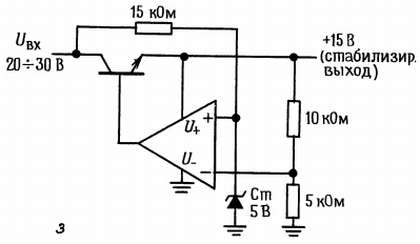 Рис. 4.95. и — операционный усилитель в качестве стабилизатора +15 В;