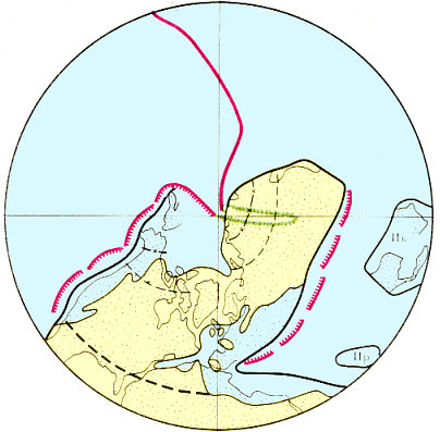 Наиболее прохладные условия в течение триасового периода существовали на северо-востоке Евразии. По сравнению с другими областями здесь обнаружено очень малое содержание карбонатного материала (одного из основных показателей теплого климата), установлен иной тип растительности и животного царства, в котором отсутствуют типичные группы тропических организмов (кораллы, морские ежи). Остатки морских беспозвоночных обладают нежными и тонкими раковинами.