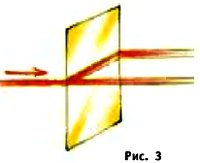 Обе картины объясняются двойным преломлением лучей. Очень многие твердые вещества способны один и тот же луч света разделить на две части, идущие немного в разных направлениях (рис. 3).