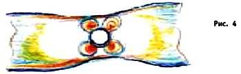 Возьмите кусок полиэтилена, надрежьте его и, поместив между затемненными поляроидами, потяните. В районе надреза появятся радужные линии (рис. 4).