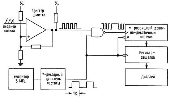 Рис. 15.25. Схема измерения частоты с помощью счетчика.