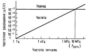 Рис. 15.29. Разрешающая способность для счетчиков частоты и периода.