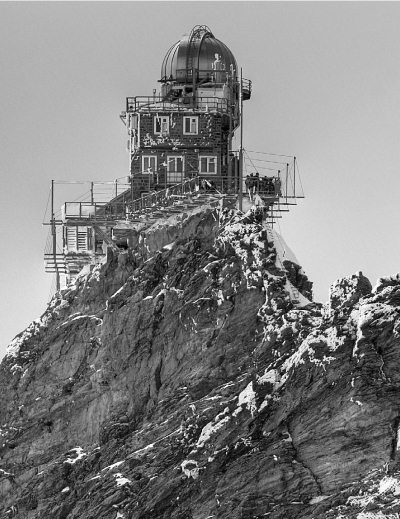 Рис. 3.24. Высокогорная обсерватория «Сфинкс» в Швейцарских Альпах на высоте 3570 м. Здесь занимаются инфракрасными исследованиями атмосферы и Солнца. В башне находится 76-сантиметровый кассегреновский рефлектор.