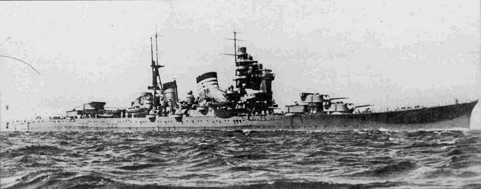 5-я эскадра в полном составе в конце 30-х гг. Сверху вниз: “Асигара”, ”Нати”, “Хагуро”, “Миоко”