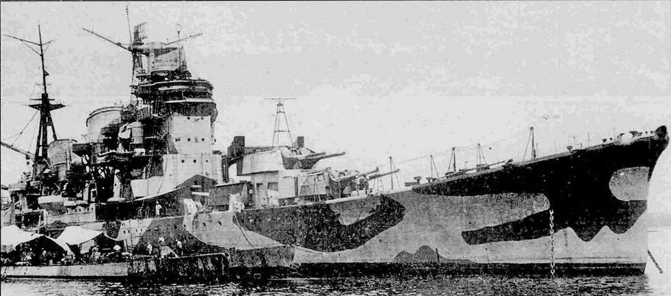 Отличия после модификации 1932-1933 годов: спонсоны с 13,2-мм автоматами на носовой надстройке, расширена платформа за визирным постом, вышки с директорами УЗО типа 91 по бокам носовой трубы, башенки с 2,5-метровыми дальномерами между трубами, 12-см зенитки за щитами, пост наблюдения за вспомогательным директором ГК, катапульта типа Куре №2 модель 1