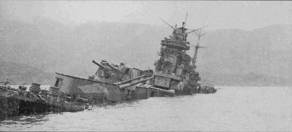 “Тоне” (вверху) и "Аоба” (внизу) после налетов американской авиации в июле 1945 года