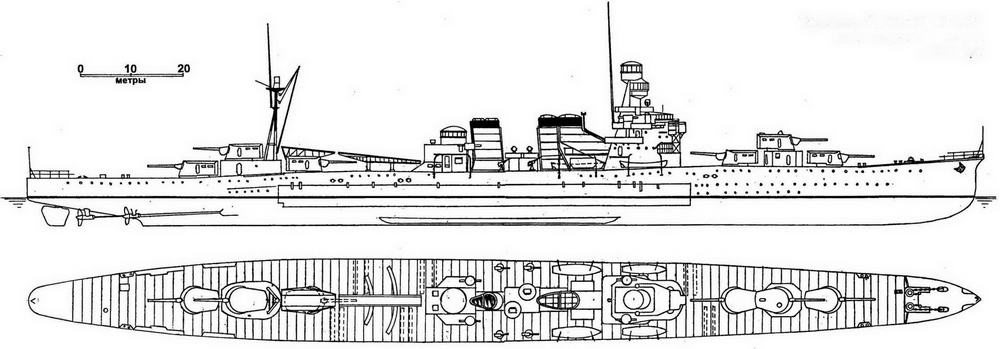 ”Нати” после ввода в строй в ноябре 1928 г. (12-см зенитки еще без щитов, отсутствует дополнительная надстройка по бокам носовой трубы)