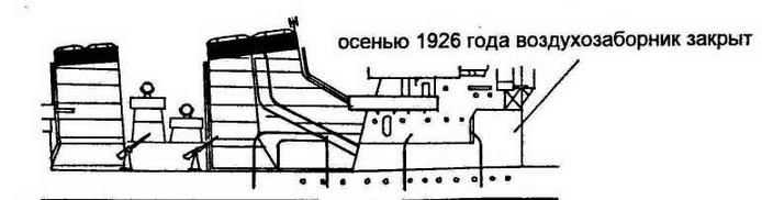 “ФУРУТАКА” в 1927 году (то же “КАКО”): трубы удлинены; правый прожектор приподнят