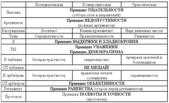 Вот где сказывается подлинное мастерство эристика. Он должен чувствовать тему, помнить сказанное, уметь поймать соперника на противоречии. Холерика охладить, флегматика запутать, вовремя прикрыть слабое звено рассуждений, найти брешь в умозаключениях соперника, где-то уступить, чтобы обрушиться и смять.