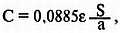 здесь S — площадь пластин в см2, а — расстояние в сантиметрах, ε — диэлектрическая проницаемость.