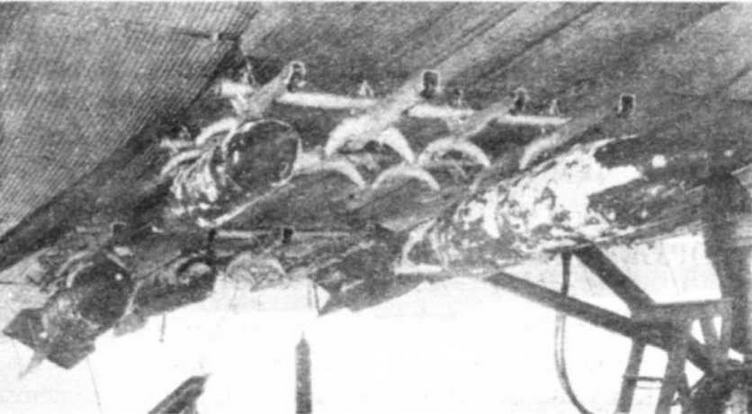 Ротативно-рассеивающие бомбы под ТБ-3. Видны все три типа: РРАБ-250, РРАБ-500 и РРАБ-1000