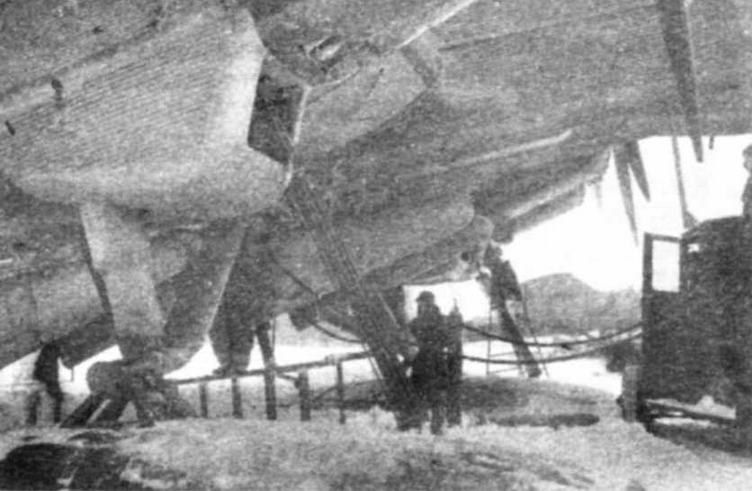 Четырехмоторные ТБ-3 уже получили возможность нести весь этот ассортимент. Самая большая бомба, ФАБ- 1000 (она же АФ-1000), подвешивалась снаружи под фюзеляжем. На полигонных испытаниях под Балаклавой такую бомбу сбросили на бетонный каземате потолком толщиной больше полутора метров. Взрыв попросту сдвинул всю верхнюю часть строения. ФАБ-1000 давала воронку диаметром 17 м и глубиной 4 м. Но основным оружием для ТБ-3 считались «сотки», два десятка которых он нес на кассетных держателях в фюзеляже.