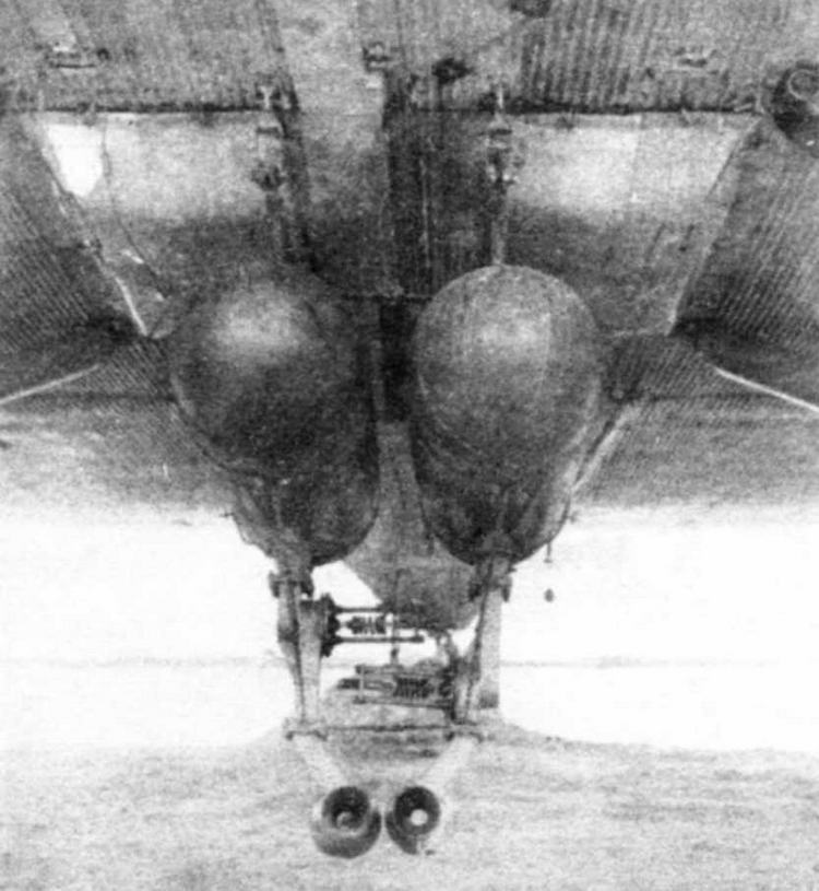 На немецкие ЮГ -1 уже подвешивали новые пятипудовые (82 кг) бомбы АФ-82, являвшиеся упрощенным вариантом старой конструкции Орановского. В 1922 г. появились опытные образцы фугасных бомб калибра 100 кг и 250 кг. Но АФ-82 оставалась самым крупным боеприпасом ВВС РККА до конца 20-х годов. Именно под него были сделаны внутренние бомбовые кассеты ТБ-1.