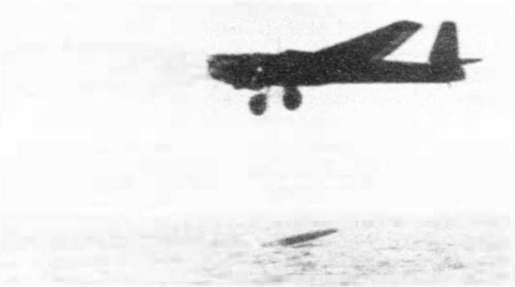 Конечно, создавать смертельную концентрацию не обязательно. С точки зрения военной целесообразности выгоднее вывести солдата из строя, но не убивать. Пострадавшего надо будет эвакуировать в тыл, лечить, кормить, затрачивая на него ресурсы, а пользы от него противнику уже не будет никакой и никогда или какая-то будет, но очень нескоро. Но возможности даже огромных баков не безграничны. Значительная часть содержащейся в них отравы, если цель — не большой город, пропадет бесполезно. При распылении с большой высоты часть унесет ветер, часть испарится. Конструкторы регулировали разбрызгивание раствора, добиваясь большего среднего размера капель. При этом отношение веса капли к ее поверхности увеличивается, потери на испарение уменьшаются. Однако существенного эффекта это не дало. Нанесение ударов выливными приборами с высот более 1000 м даже при очень больших расходах признали невозможным. Но гигантский бомбовоз не может штурмовать цель с бреющего полета!