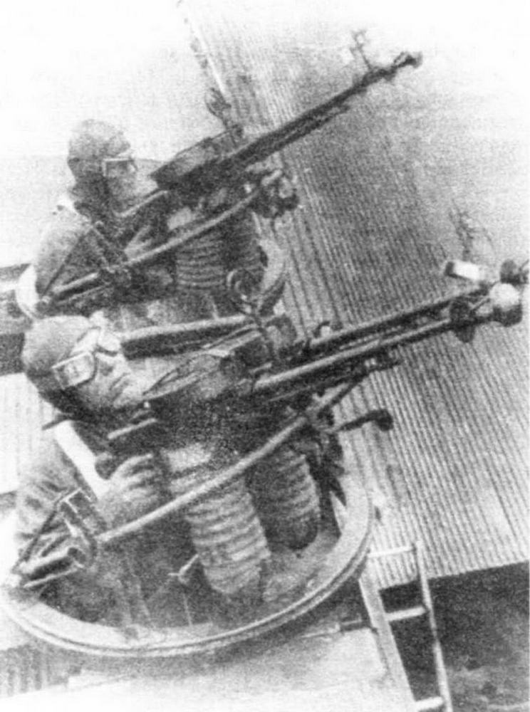 Спаренные пулеметы ДА-2 на задних перекатных турелях бомбардировщика ТБ-3