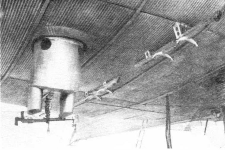 На бомбовозах-гигантах намеревались смонтировать еще большие выливные приборы. Например, на уже упоминавшемся Г-1 планировали установить съемные внутренние баки в общей сложности на 20 т раствора (это около 22 000 л). Сколько людей и лошадей (а заодно кошек, собак, коров и так далее) можно было этим убить — трудно подсчитать. Чтобы повысить расход, высокое давление внугри бака собирались создавать сжатыми газами или пиротехническими устройствами.