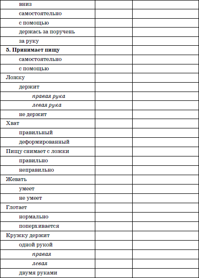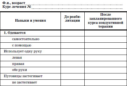 не являются самоцелью: их суммация с неизбежностью приводит к улучшению самообслуживания. Улучшение самообслуживания, в свою очередь, является наиболее общим, интегративным отражением состояния двигательной и психической сферы. Важно подчеркнуть, что уровень и качество самообслуживания отражают степень приспособления к окружающей среде, степень самостоятельности и по своему характеру ближе к показателям ограничения жизнедеятельности, что имеет определенное правовое значение.