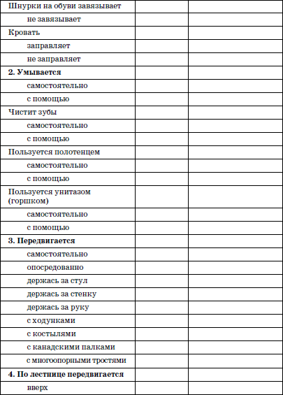 Ниже предлагается один из вариантов шкалы оценки изменения навыков самообслуживания в процессе реабилитации (табл. 23).