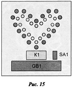 По мнению автора, интересным вариантом может быть одноплатная конструкция, эскиз-вариация которой изображена на рис. 15. Пульсирующее сердце в разных ритмах. Просто и символично…
