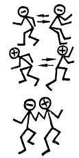 Л. — Правильно. Магнитные поля действительно ведут себя аналогично электрическим полям или электрическим зарядам: одноименные отталкиваются, а разноименные (как, например, протоны и электроны) притягиваются (рис. 11).