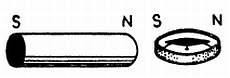 Рис. 11. Северный полюс N намагниченного стержня притягивает южный полюс S свободно вращающейся магнитной стрелки компаса.