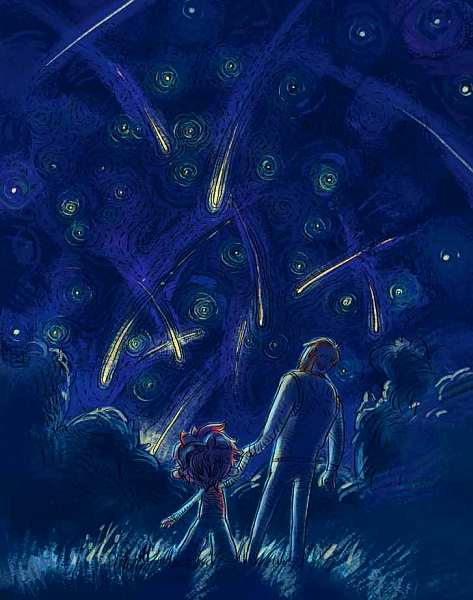 — Я знаю! Они ещё называются звездопадами! Это когда много сразу искорок — одна за другой, одна за другой… И можно загадывать много желаний. А помнишь, как мы с тобой однажды видели звездопад?